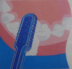 Posicione a escova num ângulo de 45º, dirigindo as cerdas para a junção dos dentes com as gengivas. É importante massagear as gengivas enquanto você está escovando os dentes. Isto, além de fortalecê-las, remove quaisquer partículas de alimento.